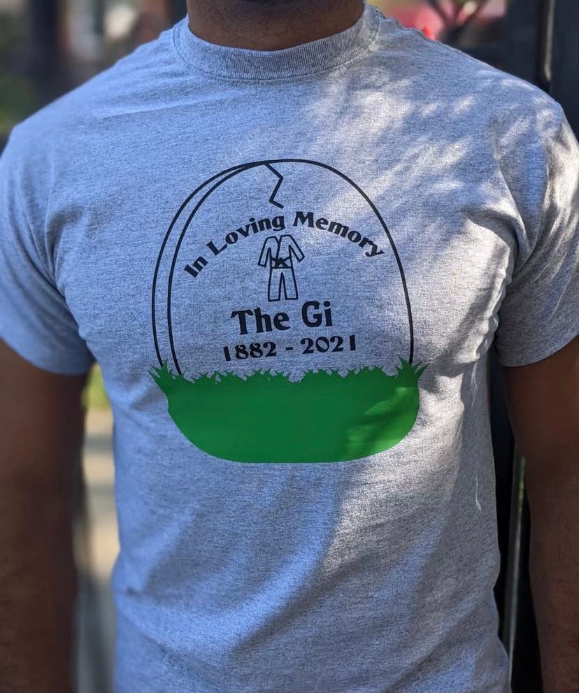 I forced myself to become pretty good at the gi, especially for a wrestler who initially hated wearing it. I learned the rules. I swallowed my pride and practiced double guard pulls and butt scooting. I became proficient at a super niche gi-specific guard (worm guard) in order to have an edge over my opponents. I competed in every gi tournament I could for years as a blue, purple, and new brown belt.